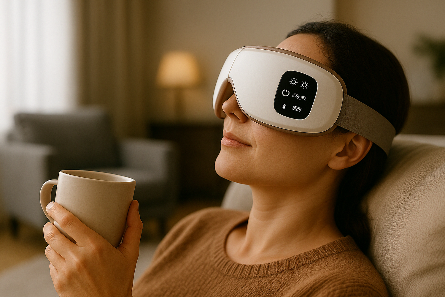 Our Eye Compress Massager delivers gentle pulsations and compression therapy to target eye tension, puffiness, and dryness.